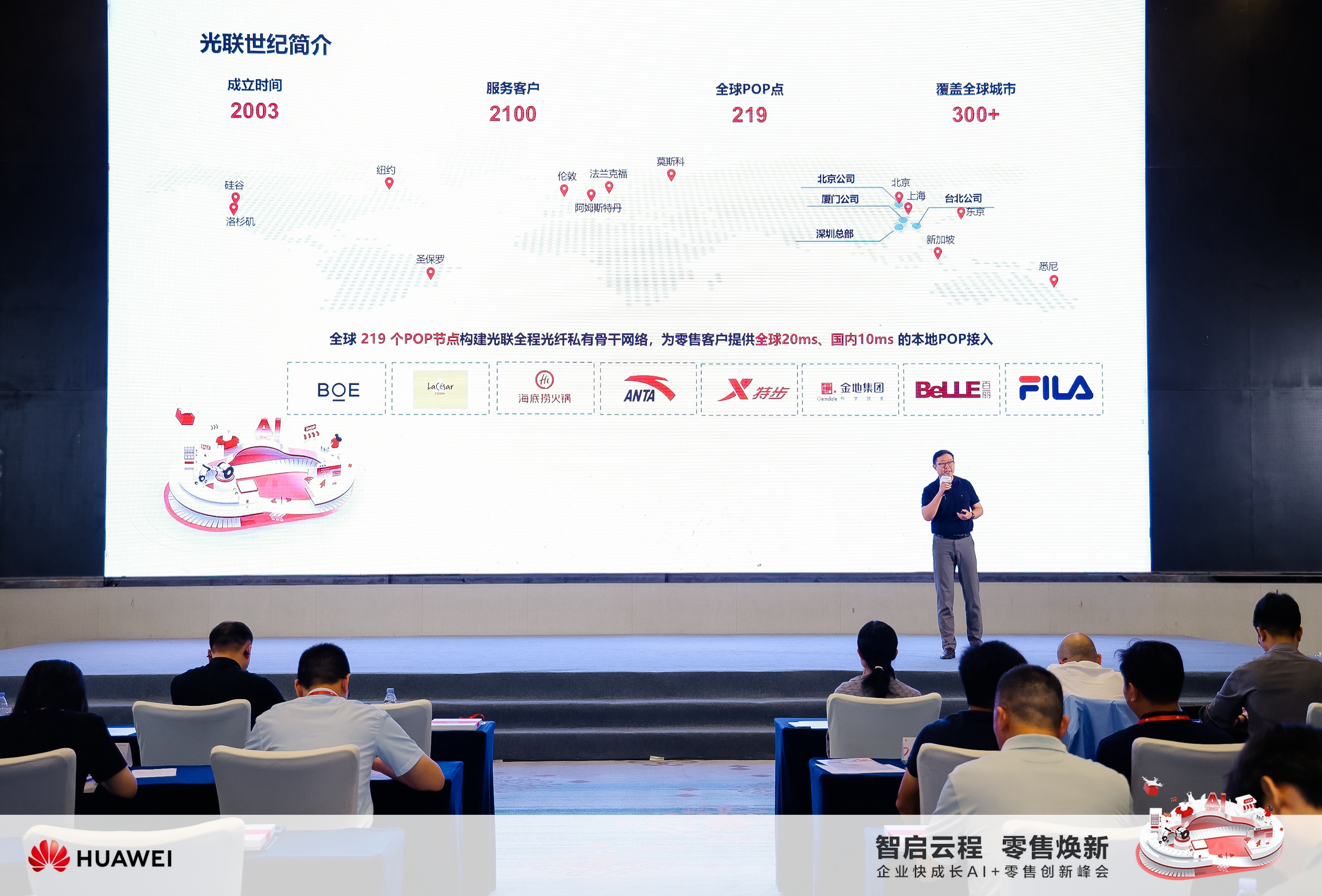 As a strategic ecosystem partner of Huawei, GLINK Century was invited to attend. Liang Zhiwei, Director of Solutions at GLINK, delivered a keynote speech titled *Cloud-Network Integration: Digital Supply Chain Transformation for Retail Enterprises*. Starting from the actual pain points faced by the retail industry, he elaborated on the smart store network solution jointly developed by GLINK and Huawei, as well as the key technical capabilities and customer success stories in its implementation.