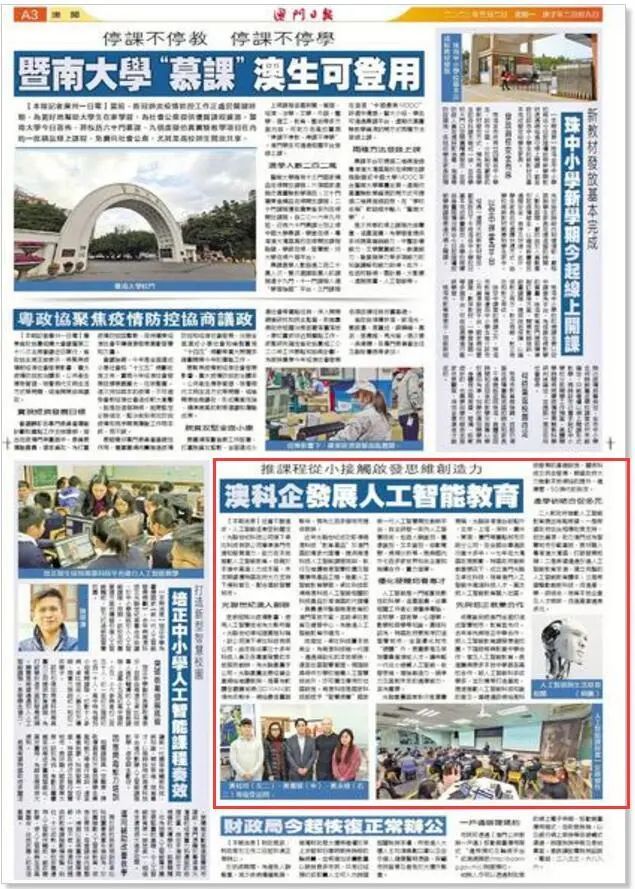 澳门日报:澳科企發展人工智能教育