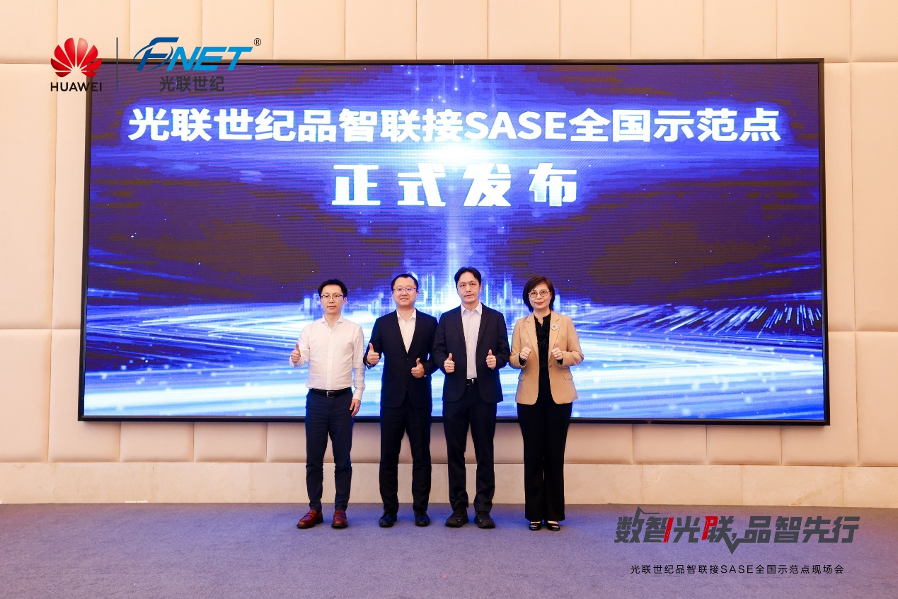 會上,光聯世紀品智聯接SASE全國示範點正式發佈。華為數據通信產品線安全產品領域副總裁劉丙雙、華為廣東政企數通解決方案銷售部部長黃大海、光聯世紀創始人兼董事長 黃書展、光聯世紀琴港澳區總經理黃桂玲出席發佈儀式,共啟千行萬業多分支網路安全智能升級的新篇章。