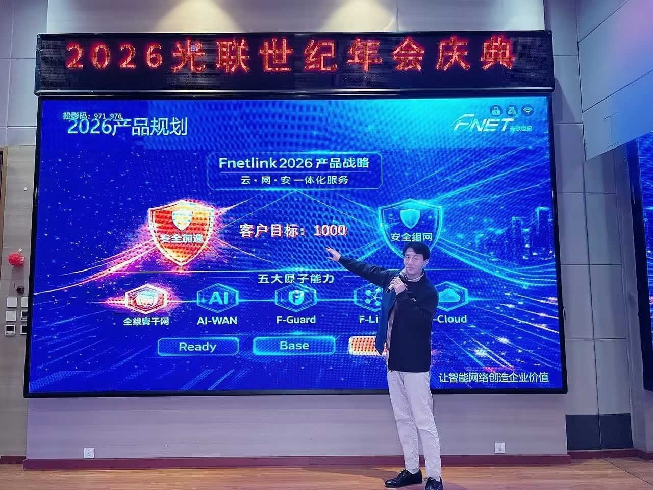 随后,产品总监刘超以“融合新生,聚力共赢”为主题进行分享,回顾 2025年产品体系的重要里程碑与关键进展,并结合行业发展趋势发布 2026年产品规划。他表示,未来公司将持续推动产品能力的融合创新与技术升级,不断强化智能网络与网络安全服务能力,为公司在行业中的技术领先与市场拓展奠定更加坚实的产品基础。
