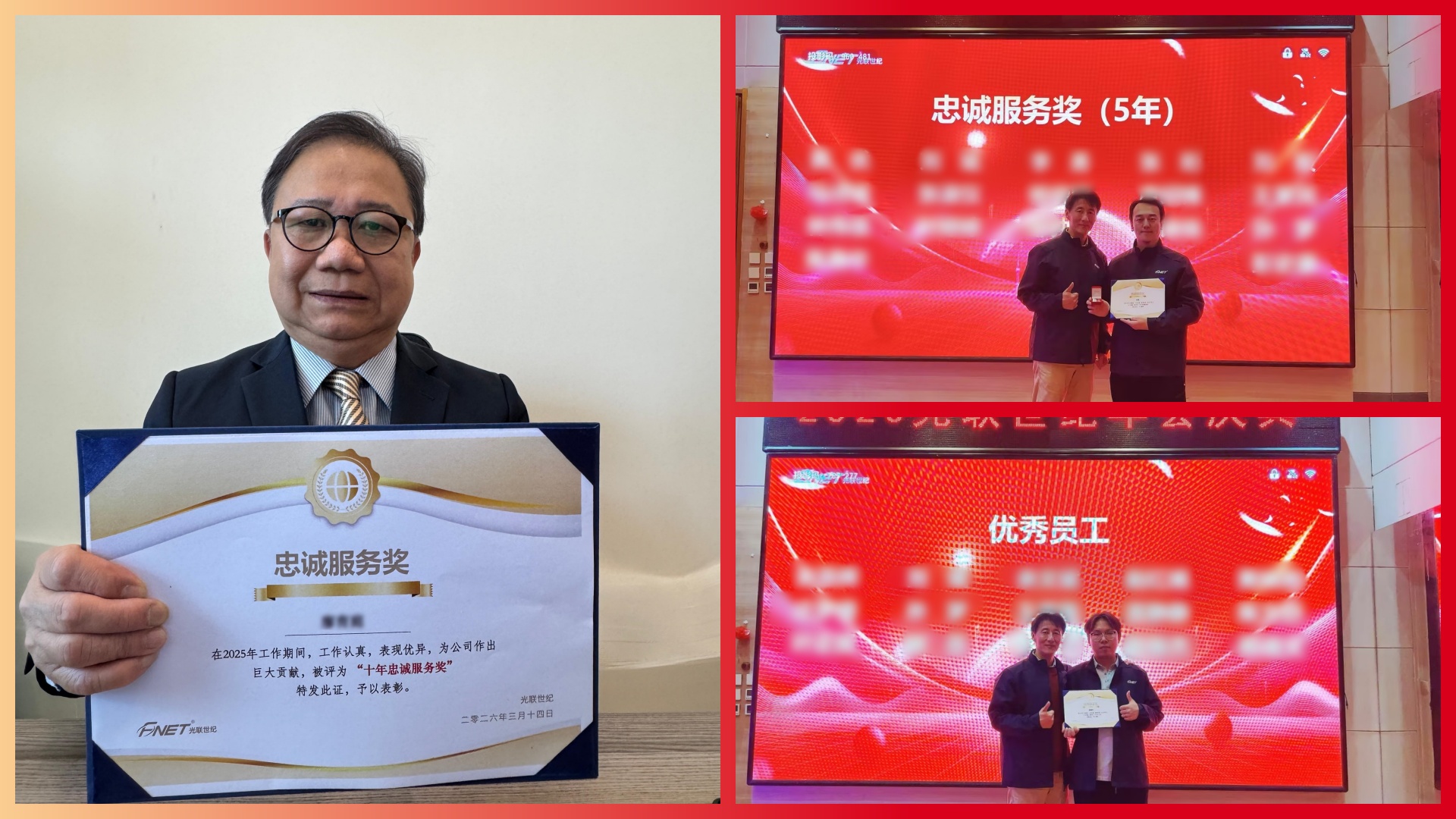 在年度表彰环节,公司对过去一年在 业务拓展、客户服务、产品创新及团队管理等方面表现突出的团队与个人进行了集中表彰,同时也向长期陪伴公司成长、持续为企业发展贡献力量的员工致以诚挚敬意。